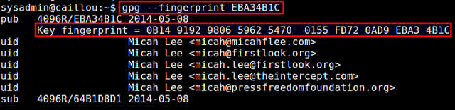 $ gpg --fingerprint EBA34B1C