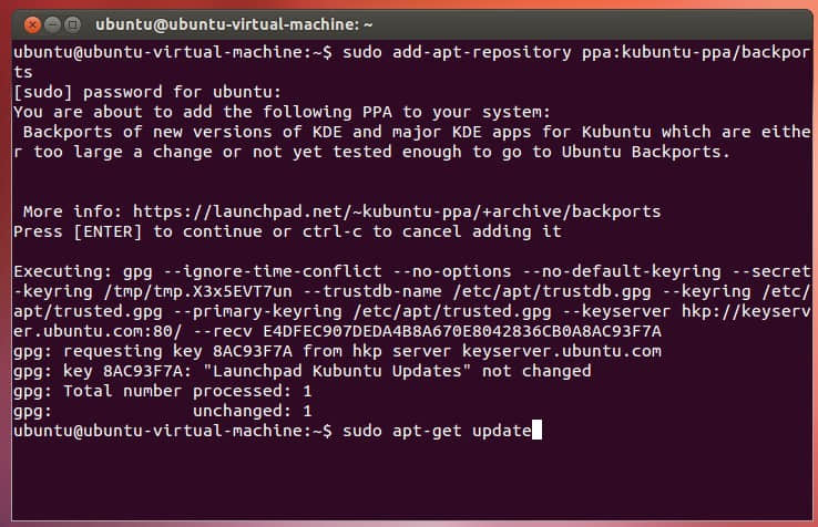 sudo add-apt-repository ppa:kubuntu-ppa/backports